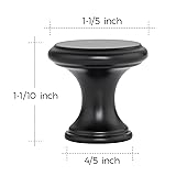 Fits Any Decor: This matte black knob is a sturdy one-piece design The slender pillars enhance its straight look, and the black finish suits various styles Ideal for kitchens, bathrooms, living rooms, or bedrooms, it adds a stylish touch Robust and Smooth: The glazed round knob resists oxidation, with a polished surface for a delicate finish. The larger base effectively hides old handle marks. The solid construction ensures the reliability of the black knobs Package Includes: After you received this package, which includes 10 pack knobs and 20 screws(10*1” screws and 10*1.75” screws ). The knobs are easy to install just use the screwdriver Size of Round Knobs:Diameter 1-1/5"(30mm);Base Diameter: 4/5"(21mm) ; Height: 1-1/10"(27mm) 365-Day Evaluation: We believe you'll value these cabinet knobs. Use them for a full year, and if they don't meet your needs, we're here to assist