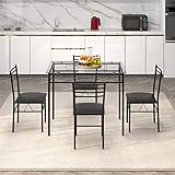 Giantex 5 Piece Dining Table Set, Kitchen Dining Set with Tempered Glass Table Top and 4 Upholstered Chairs, Dinette Set for 4 for Breakfast Nook Dining Room Kitchen (Black)