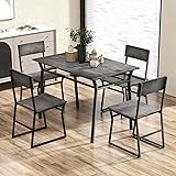 Giantex Dining Table Set for 4, 47”L x 28”W Rectangular Kitchen Table w/ 4 Trapezoid Chairs, Reinforced Metal Frame & Storage Rack, Industrial Space-Saving Dinette Set for Kitchen Dining Room (Grey)