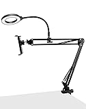 QWORK Overhead Camera Mount, Phone Mount with Ring Light, Flexible Articulating Phone Arm Stand, Phone Holder Stand, Phones Mount Clamp on Desk, for Live Stream, Video Recording and Online Teaching