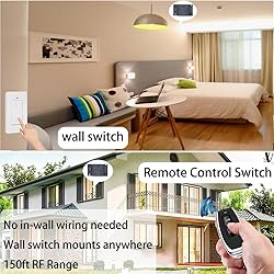 😺 【No wiring required】 AC 110V wireless light switch and receiver starter kit eliminates wires from the light to the switch position; No need to remove walls to access electrical wires; A simple and economical way to remotely control all lights without affecting existing systems; No need for wall wiring can replacement of lighting equipment 😺 【Strong signal】The strong RF signal of this wireless switches for lights can work through walls and doors, controlling lights up to 164 feet high in open areas; No line of sight is required during use; Very suitable for attic, attic, stairwell, corridor, basement, garage, etc 😺 【Strong anti-interference ability】This wireless switch allows for the use of multiple non-interference devices in a room; Allow you to install multiple independent kits in the same room for independent work; No conflict, no interference; This remote control kit is pre programmed and can be used immediately; Rated power of 10A/1100W,Working voltage: AC90V.110V.120V.220V.230V.250V suitable for almost all types of lamps and bulbs 😺 【Easy Installation】wireless light switch Simply wire the relay receiver between the power supply and the lamp to install it; Small receivers are easy to install in control boxes such as rose/canopy, electrical junction boxes, switch boxes, distribution boxes, etc; Install the wall lamp switch in any position using the included mounting bracket; Wireless switches can function as portable remote controls, which are particularly useful for the elderly or anyone with limited mobility 😺 【Widely used in various appliances】 wireless remote light switches one switch controls a group of lights, and indoor lighting equipment, ceiling lights, plug-in chandeliers, lighting fixtures, difficult to reach lights, and other appliances can be remotely turned on/off by pressing the wall switch