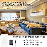 Remote Control Switch,Wireless Light Switch and Receiver Kit,164Ft RF Range,Wireless Light Switch,Remote Control Wall Switch Lighting Fixture for Lamp,Ceiling Light,Fans.
