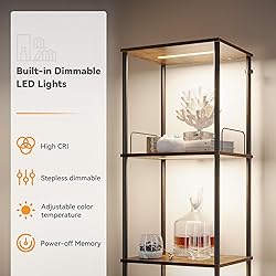 - Effortless Elegance: Transform any room into a showcase of sophistication with our sleek and stylish display shelf. Crafted with precision and finesse, it seamlessly integrates adjustable LED lighting to illuminate your treasures with a captivating glow. Customizable Ambiance: Set the perfect mood for any occasion with our customizable illumination. Adjust brightness and color temperature to create the ideal atmosphere, whether you're highlighting prized collectibles in a display case or curating a cozy corner in a curio cabinet. Sturdy and Reliable: Despite its quick assembly, our shelf is built to last. Constructed with premium materials, it offers a sturdy and reliable platform for your cherished possessions, ensuring they're displayed with confidence and stability. Simple Setup, Stunning Results: Gone are the days of tedious assembly! Our display shelf is designed for hassle-free setup, typically taking just 10 minutes to assemble.
