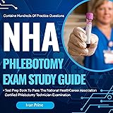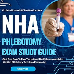 - Are you ready to embark on your journey to becoming a NHA-certified phlebotomist? Look no further!You are no doubt a busy individual with a lot of things going on! It can be challenging to find the time to study for the NHA exam. However, the truth is that the NHA test is a challenging exam. It is normal to have some anxiety about taking this test.Thorough preparation cannot be overlooked. That is why the author Ivan Prine, a healthcare professional, developed the NHA Study Guide! This edition is a complete review AND practice questions edition! It contains hundreds of practice questions and reviews all essential concepts found on the exam from all categories of the exam. You can listen to it wherever life takes you! Its sections include:I. Anatomy and Physiology A. Organization and structure of the circulatory system B. Functions of blood and its components C. Anatomy of veins and arteries D. Circulatory system disorders and their implications for phlebotomyII. Safety and Infection Control A. Universal precautions and infection control procedures B. Personal protective equipment (PPE) and its proper use C. Handling and disposal of biohazardous materials D. Prevention of needlestick injuries and other accidentsIII. Specimen Collection and Handling A. Different types of specimens and their requirements B. Proper patient identification and specimen labeling C. Techniques for venipuncture and capillary puncture D. Specimen handling, transportation, and storage guidelinesIV. Equipment and Supplies A. Knowledge and proper use of phlebotomy equipment (e.g., needles, tubes, syringes) B. Quality control and maintenance of equipment C. Selection of appropriate tubes and additives for different tests D. Inventory management and ordering suppliesV. Phlebotomy Procedures and Techniques