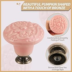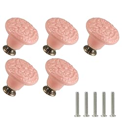 *Purchase Guiding* 5 x Pink Ceramic Flower Knobs with mounting set. Knob size: 1-3/8" x 1-1/4"(Dia.* L). Mounting hole depth is 5/16" / 8mm. 5 x Regular Screws 1" / 25mm. *Vintage Appearance* Elegant appearance, antique design and exquisite craftsmanship make it not only beautiful and stylish when collocated with modern furniture, but also add a classic charm to your home. *Durable Quality* The drawer knob is made of ceramic, which is sturdy, durable, and easy to maintain. It is an economical and practical home decoration, and easy installation is a good choice for DIY projects. *Wide Applicability* The relief pattern and simple design is suitable for many kinds of furniture such as kitchen cabinets, drawers, cabinets, doors, drawers, wardrobes, home dressers, offices and many other uses. *Comfortable Purchase* If you have any questions about our products, please contact us by email in Amazon, in order to provide our customers with a comfortable purchasing experience, we will reply you within 24 hours.