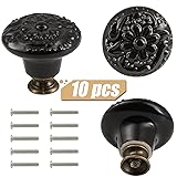Zernmiarder Black Ceramic Knobs 10 Pack Flower Drawer Pulls Vintage Cabinet Knobs - Antique Dresser Pulls with Screws for Closet Drawer Cupboard Cabinet and DIY Home Project