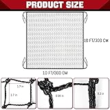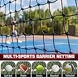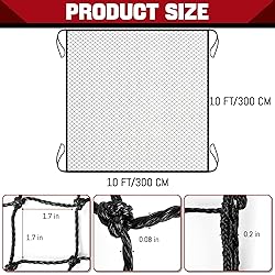 Professional-Grade Safety Netting 0.31in reinforced frame rope + 0.08in high-density polyester mesh withstands repeated baseball/golf impacts. 1.7in grid pattern optimizes ball containment and visibility for batting cages & multi-sport barriers." 3 Size Options with Installation Kit Includes 10x10ft (backyard), 10x15ft (garage), or 10x20ft (court) net + 4 rust-proof key chains & 33ft tension rope. Pre-attached corner loops enable tool-free setup in ≤15 minutes (based on 92% buyer feedback)." All-Season Durability UV-treated polyester resists fading and abrasion. Withstands -4°F to 122°F temperatures without stiffness or tearing – ideal for permanent outdoor installations." Cross-Sport Protection Effective barrier for baseball/softball pitching, hockey puck rebounds, soccer goal training, and golf driving ranges. 85% users report reduced stray ball incidents in backyard/playground settings." Complete Installation System 4 reinforced key chains securely fasten net to fences/poles, while extra cord manages slack.