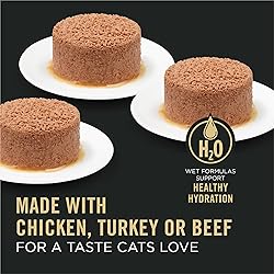 Grain free cat food made with real turkey complemented with vegetables and no artificial colors or preservatives Turkey pate cat food formula includes antioxidants for a healthy immune system and omega-6 fatty acids and vitamin A to nourish skin and coat Grain free wet cat food pate made with vitamin A and taurine to support healthy vision Adult cat food pate provides 100 percent complete and balanced nutrition and an optimal protein level for maintaining an ideal body condition Grain free canned cat food proudly manufactured at Purina-owned, U.S. facilities