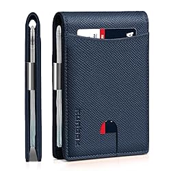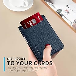 FUNCTIONAL & SLIM DESIGN - RUNBOX Money Clip Wallet measures 4.4x3.2x0.47 inches, offers up to 11 card pockets and id window, the slim wallet is ideal for carrying business cards, credit and debit cards, bills etc, the outside notch allows you to pull out the cards easily RFID Anti-Theft SECURITY - This slim wallet for men is equipped with German Institute Certified RFID Security technology, a unique metal composite, engineered specifically to block 13.56 MHz or higher RFID signals to protect the valuable information and privacy INTEGRATED MONEY CLIP - The refined metal money clip allows you to clip several bills inside your wallet. The layout design is so smart that your wallet/pocket won't be bulky any more TIMELESS SLEEK DESIGN - this men wallet is made of finest vegan leather that is made to last. Using classic patterns, clean lines, hand-stitched finish, to best combine elegance, quality and practicality GREAT GIFT IDEAS - This men's slim wallet comes in nice gift box packaging, is a perfect present for birthday, anniversaries, Father's Day, Christmas or just because, so you can easily gift it to your boyfriend, hubby, dad, friend and choose the color they may love most for their next wallet