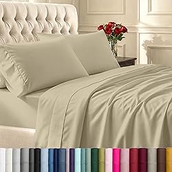 100% Long Staple Cotton, Sateen Weave Everyday Ease Cotton Sheets: Our 400 thread count bed sheets queen size are made with single-ply 100% long-staple cotton for a smooth hand feel and lightweight comfort. About this Shade & Set: Beige (Golden Tone) is a soft honey-gold with yellow undertones—not caramel or bright tan; for a true neutral, choose Taupe. 4-Piece Bed Sheets Queen Size Set includes 1 flat sheet, 1 deep-pocket fitted sheet with all-around elastic grip (fits mattresses 8"–16"), and 2 standard/queen size pillowcases with classic open-end design. Top/Bottom tags simplify bed making. Finished sizes: Flat Sheet (90" W x 102" L), Fitted Sheet (60" W x 80" L), Pillowcases (21" W x 32" L). Soft Comfort: The lightweight cotton sateen weave provides a smooth, lustrous feel that softens with each wash. Gentle on skin - naturally breathable cotton bed sheets queen set helps maintain comfort through the night. Easy Care for Everyday Use: Durable 100% cotton sheets queen size are designed for regular home laundering and can get softer wash after wash, just like your favorite denim. Tested for pilling, fading and shrinkage. Machine wash warm and tumble dry low; remove promptly to help reduce wrinkles. Trust & Responsibility: Customers have chosen our brand since 2017. Thread count is verified by independent labs (+/- 5% variance). We’ve donated over 56,000 sheet sets across the U.S. in the last five years. Crafted thoughtfully in a family-run factory in India and shipped in recyclable, plastic-free packaging.