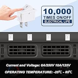 VEXUNGA 2 Pin 2 Position White Boat Rocker Switch (ON/OFF) Current & Voltage: 10A 125V AC; 6A 250V AC; Overall Size: 21 x 15mm (0.82" x 0.6") Circuit Features: 2 Positions: ON-OFF (ON/OFF). Terminals: 2 Pin. Type: SPST Material properties: The boat rocker switch is made of plastic. Rocker switches are small but practical, the contact plugs are made of conductive metal for quick installation of the switch # NOTE: PLEASE turn off the power before installation What you get: 10 x 2 pin white boat rocker switches in a sturdy and easy-to-carry box