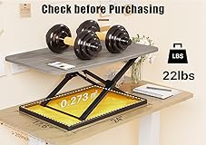 Instant Sit to Stand Desk: Just squeeze the handle on the desktop and raise or lower the desk. Once finding the desired height, release the handle and the desk will lock into position. The range of 1.8''-16'' meets all needs for sitting and standing height No Assembly Needed: Zero assembly is needed out of the box! This tabletop desk riser comes pre-assembled and ready to use in seconds. Just take it out of the package and you can start enjoying your ergonomic viewing angle in no time High Quality Gas Spring: Each Compact Sit Stand Desktop Converter can be used normally at least 10,000 times with strict load bearing test and life test. Simply pull the handle to lift easily, moving from sitting to standing in a matter of seconds Sturdy Structure & Low Profile Design: Double X-shaped heavy-duty frame holds up to 22lbs, and the slim standing desk riser distributes the weight evenly at any height within range. When lowered to the lowest, the desk is only 1.8" thick Spacious 31” Work Area: This desk converter‘s 31.3 x 19.7 inch surface provides extra-large space for single/dual monitors or dual computer monitors/laptop setups without taking too much space in home or office