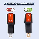 VEXUNGA ON/OFF rocker switch with red light Rated current & rated voltage: AC 250V 15A, AC 125V 20A. Overall size: 31mm x 13.8mm / 1.22 inch x 0.54 inch (L * W) Circuit properties: 2 positions: ON-OFF (ON/OFF). Terminals: 3 pin. Type: SPST # NOTE: Please turn off the power before installation Material properties: The rocker switch is made of plastic. Rocker switches are small but practical, the contact plugs are made of conductive metal for quick installation What you get: 10pcs red light boat rocker switches in a sturdy and easy-to-carry box