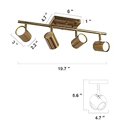 [Stunning Modern Elegance] Our gold ceiling light fixture merges contemporary design with functional excellence, instantly elevating your space. The metal construction boasts an electroplated gold finish, and with its four adjustable cylindrical heads on a sleek track, you can direct light exactly where it's needed, enriching your home with a lavish, timeless ambiance [Proportioned to Impress] The kitchen ceiling light fixture's dimensions are optimally designed for impact and versatility: Ceiling track light fixture: 19.5" x 6.5" x 4.5", Canopy: 6" x 4.3" x 1", and each metal shade: 2.2" x 2.2" x 3" [Adjustable Lighting] With the capability to be dimmed using the appropriate dimmers and bulbs (not included), this gold track light allows for the fine-tuning of brightness, creating the perfect mood for any occasion [Simplified Set-Up] Arriving pre-assembled with comprehensive mounting hardware, this gold semi-flush mount light fixture makes installation a breeze. It's an ideal choice for enhancing the lighting in any room of your home [Lighting on Your Terms] Designed for 4 x Type GU10 bulbs (not included), each with a maximum of 10W, this modern 4-light track ceiling light lets you select the ideal bulbs to match your lighting preferences and energy efficiency needs