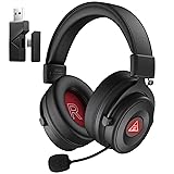 EKSA Wireless Gaming Headset for PC, USB Headphones with Retractable Microhpone, Surround‑Tuned, 20ms Ultra-Low Latency, 50Hr Battery, 2.4G Bluetooth Wired Computer Headset for PS4 PS5 Laptop