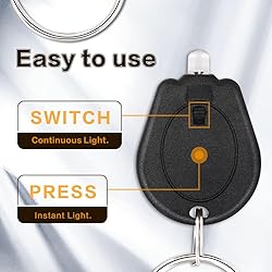 Ultra Bright Red LED Keychain Flashlight: The red keychain LED flashlight offers 12 lumens red LED light. Red light is the helpful tools for night observation, you can observe the animals behavior without disturbing them. The red light is also very helpful for Astronomy and Aviation, with it on reading charts, checklists, or other documents. Lightweight and Handy Keychain Red Light: The size of the keychain red LED flashlight is like a quarter, It's only 0.28OZ weight. It's very convenient to attach to the keychain, dog collar, zipper, backpack, hiking or camping devices and so on, it can be the easiest nearby emergency red light to get. Two Easy Use Methods: (1)Instant Key Light: Slightly pinch the middle of the red keychain flashlights with your two fingers to activate instant red light; (2)Continuous Light: Slide the On/Off Switch to turn on or turn off the mini red light keychain flashlight. Replaceable CR2032 Battery: The mini keychain red flashlight is installed one CR2032 battery, usually it gives you up to 12 hours of continuous use. You can replace the new batteries easily by user manual. Great Gifts for Lighting Effect: 12 PCS red key ring flashlights are included in the package. They are also perfect for night party, Christmas, Halloween, and so on.