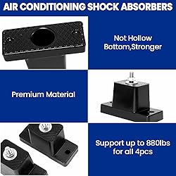 Heavy Load Capacity: Each set of four mini split pads supports up to 880 lbs when paired with a mini split wall mounting bracket, ensuring rock-solid stability for even the heaviest outdoor AC units. Durable Construction: Rubber isolator mounts made with premium rubber and reinforced hardware deliver lasting vibration absorption and reliable protection for your condenser pad and equipment. Wide Application: The mini split mounting brackets and pads work not only for AC units but also for HVAC systems, compressors, generators, and other heavy-duty equipment. Noise & Vibration Reduction: The thick condenser pad design and resilient rubber isolator mounts absorb shock and minimize noise transfer, creating a quieter and more stable operating environment. Complete 4-Pack Set: Each package includes four mini split pads compatible with mini split wall mounting brackets, providing balanced support and stability for your outdoor unit installation.