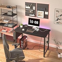 • Lufeiya 39 inch Black Computer Desk with Power Outlet, 40 inch Teen Study Table Home Office Work Writing Desks with Charging Station Outlets Built in, Black