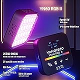 YONGNUO YN60RGB II LED Panel Video Light with OLED Screen, 68pcs LED Lamps 2500-9900K Color Temperature CRI 95+ HSI 0-360 Degree, 25 Special Scene Modes, 2000mAh Built-in Lithium Battery