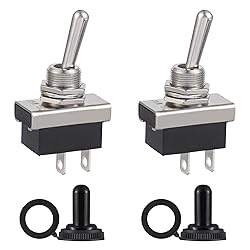 - VEXUNGA Toggle Switch 25A 12V Switch with Waterproof Cap (On/Off). Product parameters Contact resistance: 50 mΩ max Insulation resistance: 500 VDC 1000 MΩ min Dielectric strength: 1500 VAC 1 minute Operating temperature: -25℃~+85℃ Mechanical life: 50,000 times Electrical life: 10,000 cycles Protection: waterproof, dustproof, rubber covers protect the toggle switches from moisture. Contact material: silver plated copper Button handle material: iron Shell material: flame retardant shell Application area: vehicle mounted equipment, mobile home, yacht, automotive machinery, ship, lighting. e.g. for switching lights or motors. -KN3D-101(ON/OFF) toggle switch is sturdy and easy to install. -Each switch is equipped with two hex nuts and a flat washer. Packing list: 2 x KN3D-101 Toggle Switch 2 x Waterproof cap
