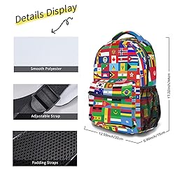 Worlds Flag Backpack With Adjustable Padded Shoulder Straps 17 Inch Daypacks For College Travel