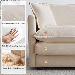 【Spacious Furniture】:Sturdy solid wood frame, high-end breathable chenille fabric, filled with high-quality sponge, making this modular sectional sofa beautiful and comfortable, it can be a perfect match for your living room, bedroom, home office, etc. 【Flexible Combination】:Each seat unit can be moved and re-matched. Ottomans, accent chairs, loveseats, sectional sofas, sofa sets, and more, just unleash your creativity and choose the units you need to combine and furnish your modern home. You are the best designer for your home. The seats are fixed together by screws on the sofa base. 【Superior Comfort】:Upholstered in high-end breathable Chenille fabric and high-quality sponge, with cushioned thick foam at the backrest and seat for prime relaxation. Lean back and stretch out your legs long on the ottomans when you or your guests need more space. Customize the placement of the pillows anywhere you would like to add extra support when sitting after a long day or watching a movie. 【Product Dimensions】:4-seat Sofa Size: 146.5" Wx 35" D x 33" H; 3-seat Sofa Size: 111.5" W x 35" D x 33" H; Loveseat Sofa Size: 76.4" W x 35" D x 33" H; Armchair Size: 41.4" W x 35" D x 33" H; Ottoman Size: 35" W x 22.4" D x 19" H. Weight Capacity: 250 lbs / Seat. There may be slight color differences due to light or monitor. 【Easy to Assembly】:The sofa is in vacuum compression. After unpacking, you can pat it to restore it to its original state. Enjoy the fun of assembly with your partner! This sofa needs to be assembled, with instructions manual and tool included. If you have any questions, we will always be online to answer your questions within 24 hours.