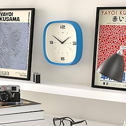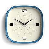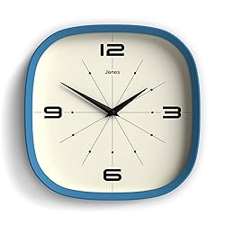 JONES CLOCKS® Pulsar Wall Clock | Square Rounded Retro Clock | 10 inch | Blue | Cool Designer Look for Kitchen, Living Room or Office