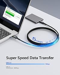 Works with Android Auto: This 10FT USB-C android auto cable can quick-charge your USB-C devices at up to 3A safe charging power, deliver up to 18W(max) power. 56KΩ pull-up resistor provides a safer charging current, protect your devices from damage.Works great with your car Android Auto. USB 3.0 Hight-Speed Data Sync: USB 3.0 5Gbps, support super speed transfer. 10X faster than USB 2.0 (480Mbps). USB 3.1 Gen 1 USB C to A Cable cable transfers an HD movie or over 1000 songs in only 10 seconds. 10FT Extra Long: Have you ever been frustrated by the short length of your original charger cord? Now you can lie down on your couch, on your sofa, on your bed, or in your car rear seat and charge your Phone to be able to social media, watch TV, and play games! Charge and Play at the same time! Great Compatibility: This usb c data cable is compatible with iPhone 15/15 Pro Max, Galaxy S23/S23 Ultra/S22/S22 Ultra/S21/S21+/Note 10 Plus/Note 20 S10/S10e/S10+, Pixel 5 6 7 Pro, iPad Pro 2020, MacBook, MacBook Pro, MacBook Air, LG G6 G7 V40 V35, ThinQ V30S V30, Chromebook, Dell XPS 13, for Samsung T7 Shield, Extreme Portable SSD and more. What You Get: You will receive 1pcs 5Gbps 10FT USB C Cable, with our 12-month product replacement warranty and lifetime 24/7 friendly technical support.