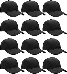 Generic Plain Blank Black Caps with Adjustable Strap (12PCS), Medium