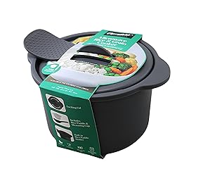 - Efficient Microwave Rice and Grain Cooker - Perfect for families and those seeking healthy meals fast. Features include: - Versatile Use: Ideal for all rice types, grains like quinoa, and steaming vegetables. - Large Capacity: 77.8 oz (2.3L), suitable for family meals or meal prep. - Convenient Accessories: Includes a mixing/serving paddle and a 1-cup measuring cup. - User-Friendly: Equipped with a secure locking lid and rice paddle holder for easy storage. - Quick & Healthy: Offers a simple solution for nutritious meals without the hassle. This compact, lightweight cooker is constructed with food-safe materials, ensuring safety and convenience. Ideal for busy individuals, it supports a balanced diet with minimal effort. Order now for simple, delicious meals at the touch of a button!