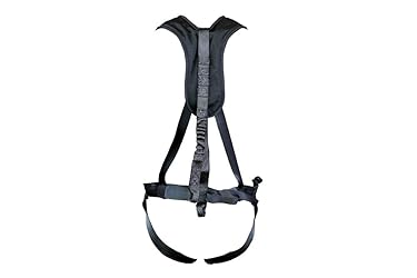 Blend Imported Lightweight, economically priced full-body safety harness Comfortable shoulder straps and back padding Quiet, adjustable straps with slides High-performance bungee tether Covered by a 1-year limited warranty Medium (for 28" to 35" waist size) Large (for 35" to 46" waist size)