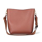 COMFORT AND FIT: This soft bucket bag has an adjustable removable cross-body strap, is lightweight for comfort, and is the perfect size to fit your daily essentials. MATERIAL: Amazon Essentials bags are made from high-quality alternative leather materials. This style has a pebbled faux leather body, webbing shoulder strap, and metal hardware. STYLE: The adjustable and removable shoulder strap allows you to wear this bag across the body, on the shoulder, or on the arm. The hidden magnetic closure ensures your belongings are secured, internal pocket for organization and metal hardware gives a refined look. DETAILS: 9.5 inches long at base, 12.5 inches long at top opening x 10.5 inches tall x 5.5 inches wide. DESIGN: This bag is your perfect styling accessory for day or night.