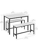 VASAGLE Dining Table Set for 4, Kitchen Table with 2 Benches, 43.3 x 27.6 x 29.5 Inches Dining Room Table, 38.2 x 11.8 x 19.7 Inches Bench, Marble White and Ink Black UKDT070B59