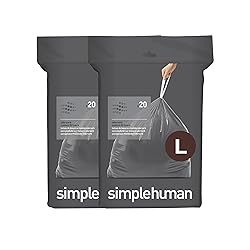 simplehuman Code L 40 Count, Genuine Custom Fit Liners, Drawstring Trash Bags in Dispenser Packs, 18 Liter / 4.7 Gallon