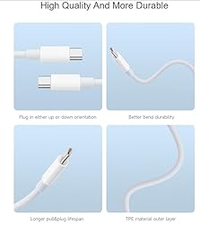 - Features 1.Type-C to Type-C 100W Fast Charging Data Cable, 1M Cable Length 2.Simultaneous Charging And Data Transmission, up to 40MB/s speed 3.Supports 5A high current, compatible with various charging protocols such as PD/SCP/FCP/QC 4.Compatible with data transmission and charging functions of various Type-C devices Note: This data cable does not support audio/video signal transmission 5.Built In E-Marker Chip: Intelligently matches the required current ( 5A Max) for the device, ensuring safe and fast charging. Package Content PD-Cable-100W x1