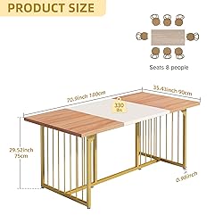 Engineered Wood+metal Dining Table for 8: Measuring 70.86" W x 35.43" D x 29.52" H, designed with ample space to comfortably seat up to 8 person, making it the ideal choice for big family gatherings or dinner parties with friends. Besides, the spacious tabletop of the large kitchen table provides plenty of room for plates, glasses, and utensils, as well as serving dishes and decorative accents. Eye-Catching Style - With its walnut finish and simple modern style, the modern dining table is sure to become a focal point of your kitchen & dining room, and it's also versatile enough to complement a wide range of decor styles. Sturdy Structure: Built with a heavy-duty iron frame and thick MDF board, this dining room table for 6 is sturdy and durable. Adjustable foot pads of this 4-person kitchen dinner table keep the table level on uneven floors and prevent floor scratches. The kitchen tables support up to 330 lbs. Versatile Use: This wood dining table for 6 can also function as a computer desk, study table, writing desk, or breakfast nook. This rectangle kitchen table can be use in kitchens, living rooms, party rooms, restaurants, bars, and more. Easy to Assemble: Each part is marked with a letter or number, and clear step-by-step instructions make assembly easy.