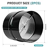 【Material】These 4 inch backdraft dampers are made of a Galvanized steel with powder coat, the flap leaves are made of aluminum 【Installation】The backdraft damper is installed by pushing it into the ventilation pipe as far as it will go. The position of the spring should be horizontal when the flap is installed horizontally so that it can be opened and closed optimally. This also applies to the vertical installation 【Function】This airflow regulating backdraft shutter fits over the TD lip and is designed to improve ventilation by preventing air from re-circulating when the fans are not in use 【Wide Application】 These backdraft dampers can be widely used in ACs, exhaust fans, extractors, range hoods, heating ducts, vents and other residential, commercial and industrial applications 【Note】Each package includes 2 backdraft dampers. Back draught valves can be inserted into ventilation ducts which are flexible or non flexible. Cannot be used with plastic ducts as the sizes are different. All dimensions are measured manually, please allow 1-3mm differences