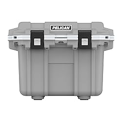 VOLUME: True 30 quart internal volume (holds 22 cans) EXTREME ICE RETENTION: 2 inches of polyurethane insulation with a freezer-grade gasket delivers extreme ice retention FEATURES: Molded-in handles, 4 self-draining molded-in cup holders, molded-in fish ruler, unique press & pull latches, anti-shear hinge system FEATURES: Reinforced lock hasp with built-in stainless steel bottle opener, molded-in tie-down slots, sloped drain with tethered drain cap, non-skid rubber feet MADE IN USA: Includes Pelican's legendary lifetime guarantee - "you break it, we replace it. Forever!"