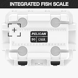 VOLUME: True 30 quart internal volume (holds 22 cans) EXTREME ICE RETENTION: 2 inches of polyurethane insulation with a freezer-grade gasket delivers extreme ice retention FEATURES: Molded-in handles, 4 self-draining molded-in cup holders, molded-in fish ruler, unique press & pull latches, anti-shear hinge system FEATURES: Reinforced lock hasp with built-in stainless steel bottle opener, molded-in tie-down slots, sloped drain with tethered drain cap, non-skid rubber feet MADE IN USA: Includes Pelican's legendary lifetime guarantee - "you break it, we replace it. Forever!"