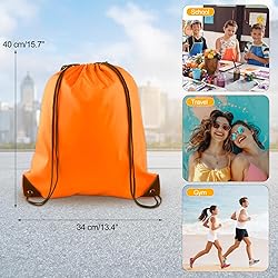 • Drawstring Backpack Bags Bulk Sack Bag String Backpack for Gym Traveling Color:Orange Size:40cm*34cm/15.7”*13.4” Material: 210D polyester Drawstring design, 2 straps each side, lightweight and easy to carry, can be a gym backpack or a school book bag Drag the string to close the bag, drawstring design allows you store things quickly and take them in and out easily Package includes: 40 x Drawstring Backpack Bags Notice: 1: Please keep away from kids under 3 years, play under adult's supervision 2: Please get away from fire
