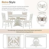 Merax Dining Table Set for 4, Extendable Round Tabletop with 16 inch Leaf and Upholstered Chairs, Retro Hollowed-Out Carving Design, White