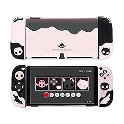 - GeekShare Sweetheart Skull Protective Case Compatible with Switch OLED Features in: Exclusive Design -- The cool skull design is original and unique,we specially designed this case for the Switch OLED . Ultra-thin and Comfortable -- This protective case is ultra-thin, sturdy but lightweight and the breathing hole will not make your consoles be hot, makes playing more comfortable. Separable Design -- Easy to install and remove. No need to taking off the cover case, so you can enjoy the game in the way you prefer. Soft Touch -- Keep the original soft touching feelings, non-slip and anti-fingerprints, the silky, soft-touch gives you a better gaming experience while playing. Item Specifications: Material: High Quality PC+Soft Silicone Color: As the picture shown Package Includes: -- 1 X Switch console back case -- 2 x cover cases -- 2 X thumb grip caps -- 1 X playstand -- 1 X double-sided adhesive sticker Notices: 1. Designed specifically for the Switch OLED ONLY, not suitable for regular Switch or Switch Lite. 2. All Switch accessories shown in images are for usage demonstration purposes only and are not included in the package. 3.We have tested that this protective case is dockable, which is slightly tight and does not affect the use. But due to the tolerance of the protective case and the dock, some dock may not be used.If you have any question,please contact our customer support.
