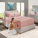 Microfiber King Size; Includes 1 extra deep pocket fitted sheet, 1 flat sheet and 4 pillow cases. Deep pocket fitted sheet measures 78 inches x 80 inches and fits mattresses 18-24 inches deep. Flat sheet measures 105 inches x 102 inches. Pillow cases measure 20 inches x 40 inches. Hotel-quality fitted bedding is woven from the highest quality microfiber material, double brushed on both sides for ultimate softness and comfort. Deep pocket sheets fit deep pocket 18 inch, 20 inch, 21 inch, 22 inch and 24 inch mattresses. These are the best sheets for extra tall & large mattresses Resistant to pilling and snagging, our sheets are pet-friendly and made to last. Our fabulous selection of vibrant colors won’t fade after washing. Fade, stain, shrink and wrinkle resistant. Machine washable in cold, dries quickly on tumble dry low temperature.