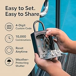 🗝️ Secure Key Storage: Keep your keys safe and accessible with a combination lock box that provides a secure solution for key storage. 🚪 Versatile Mounting Options: Comes with a convenient door hanger and wall mount for flexible placement, ensuring easy access wherever you need it. 🎛️ Customizable Combination: Set your own 4-digit code for personalized security. The combination can be easily customized and reset to suit your preferences. 🛡️ Surface Protection: Equipped with scratch-resistant protective rubber and foam padded surfaces to prevent any damage to the attached surface, ensuring a gentle and secure fit. 🌦️ Enhanced Weather Protection: Features a shutter that provides advanced weather protection, safeguarding the combination dial from the elements, dirt, and debris.