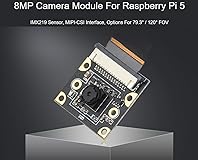 - IMX219 Camera Module for Raspberry Pi 5, 8MP, MIPI-CSI Interface, 79.3° FOV (Field of view) Specifications PIXELS: 8MP Sensor: IMX219 resolution: 3280 x 2464 CMOS size : 1/4 inch Aperture (F) : 2.0 Focal length: 2.85mm Field of view: 79.3° DISTORTION : <1% Lens Dimensions: 6.5x6.5mm Screw holes: 4 x screw holes, used for attachment, provides 3.3V power output Dimension: 25x24mm Comes with Online Tutorial and Online Development Resource: n9.cl/up454m Package Content Pi5-IMX219 camera and with Pi5 CSI Flexible Cable 200mm. Note: the RPi5 board is not included. Hardware Connection Note: To test the Camera, you need to connect a HDMI display or a DIS display for previewing. The connectors of the DSI interface (display) and the CSI interface (camera) look the same, please take care of it when you connect the camera. The CSI interface is placed between the Audio jack and the HDMI port. The CSI connector of Pi zero is beside the Power interface. If you use the Compute Module, please check the actual place of the carrier board. When Connects withRaspberry Pi 5, Place the metal surface of the FPC cable towards the wired network port, then connect to the CSI port. The Pi5 has two CSI ports; either port can be used for connection.