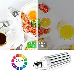 High Quality : 54W Led corn light Made of aviation aluminium and ABS plastic, aluminum structure ensures high efficient heat dissipation, ABS housing protects the bulb with IP64 waterproof rating and good corrosion resistance Energy Saving : LED corn light bulb can save up to 82% on electricity consumption when compared to the high pressure sodium lights. 54Watts has up to 6000 Lumens and can replace a 400 Watt Metal Halide/HID/HPS light Super Bright : 162pcs SMD5730 LED, 6500K Daylight White 6000 Lumens high brightness, CRI>85, help show natural colors more vibrantly Installation Guide : This bulb is not compatible with ballast, please remove or bypass the ballast of your replacement fixture to avoide damage. Standard E26/E27 base but with larger size(3.5" x 11") than a standard light bulb, please well check the size if you need to install into fixture with size restrictions Wide Applications : Unique design, energy saving, fast cooling,long service life,360° Shining, no dead corner,no glare, no flicker, easy install(just screw to E39/E40 socket). Great for garage, driveway, warehouse, barn, patio, courtyard , garden, street, office, school, hospital, shopping mall, supermarket, station, restaurant, hotel, workshop etc, anywhere need bright light