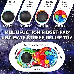 - pecifications: Material: plastic Quantity: 2 pcs Features: 1. This relief stress fidget pad is suitable for students, office workers, artists, time-killers, lovers of classic gaming and those one who suffer from anxiety, it will create more fun to your dull life, and help you to past the boring time fast and easily. 2. Using selected plastic as material, the anxiety fidget controller can be used for long time to last, and lightweight for easy carrying and use, you can use it securely for a long term. 3. The stress relief fidget pad has 8 different functions, including switches, buttons, rockers, massages, paddles, nepenthe, rotating dials and rolling gears, which is practical for you to choose and to relieve your pressure. Package contents: 2 pcs fidget controller pad