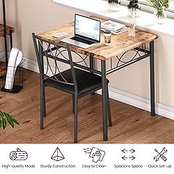 COZY UPHOLSTERED BENCH AND CHAIRS: This dining table chair set is made of premium MDF board and solid steel, which features a sturdy frame for a long lifespan. The use of metal pipes with a larger diameter makes the kitchen chairs more stable and comfortable than other products. The Upgraded Upholstered Dining Chairs seats with thick cushions, keep you comfortable all dining time. DURABLE & STURDY FRAME: This square dining table set offers a longer service life and more excellent stability. With the premium MDF Board top, the overall durability would be significantly increased. The H-shaped frame of the base makes this dining table chair more sturdy and durable. Chairs load-bearing reaches 400 lbs. SPACE-SAVING DESIGN: 2 dining chairs can be hidden under the kitchen table to save space and create a tidy atmosphere. It is an excellent solution for small spaces, such as condos, kitchens, dining rooms, living rooms, studios, or apartments. EASY TO MAINTAIN: The surface of the dining table chairs set is a waterproof and anti-corrosive coating, You can easily wipe soup, sauce, and dust clean, and the surface will not be hurt, and is sturdy for long-term use. EASY TO ASSEMBLE: All the assembly hardware and tools come with this kitchen table set. With illustrated instructions, this rustic kitchen table and chair set can be assembled within 30 min without effort. It is a perfect choice for your home. Dimensions: Table 29.16” L x 29.16” W x 30.06” H, Chair 17.76” L x 15.26” W x 35.06” H.