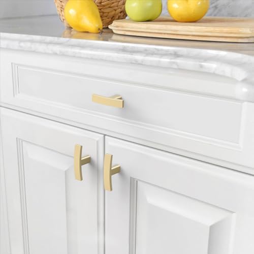 Amerdeco 10 Pack Brushed Gold Cabinet Knobs Single Hole Cabinet Handles 2 Inch Solid Zinc Alloy Cupboard Drawer Knobs Kitchen Cabinet Knobs T Bar Hardware ZH0003