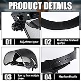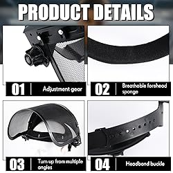 Package Quantity: get ready to experience enhanced safety with 3 pieces of work masks included in one package; For ease of transportation, the product requires installation and the PVC panels can be bent in an arc Reliable Steel Wire Material Construction: quality is an assurance with the anti fog protective full shield on your chainsaw face shield; It is made primarily of steel wire mesh, known for its outstanding strength, durability, and resistance to impact; This reliable and sturdy material not only ensures the longevity of it but also harnesses its ability to protect you adequatel Safe and Adjustable Design: the grinding face mask shield offers the advantage of adjusted fitting; Use the ratchet knob on the side of the shield to adjust the headband until it's snug and comfortable; Thanks to the design, your shield will stay in place Sweat Absorbent Feature: the inside of the forehead is equipped with a sweat absorbent sponge, which makes the face mask shield for grinding can be worn without stuffiness or tightness on the head while being lifted, and the aluminum wrapped face screen can be freely turned up and down 180°, making it convenient for observation during construction operations; This keeps you comfortable for a longer period, maintaining a dry, clean, and clear vision Wide Application: our full face mask shield is not restricted to a particular setting or activity, ideal for grinding, carpentry, DIY tasks, yard work, hedge trimming, car repairs, cutting metal and so on